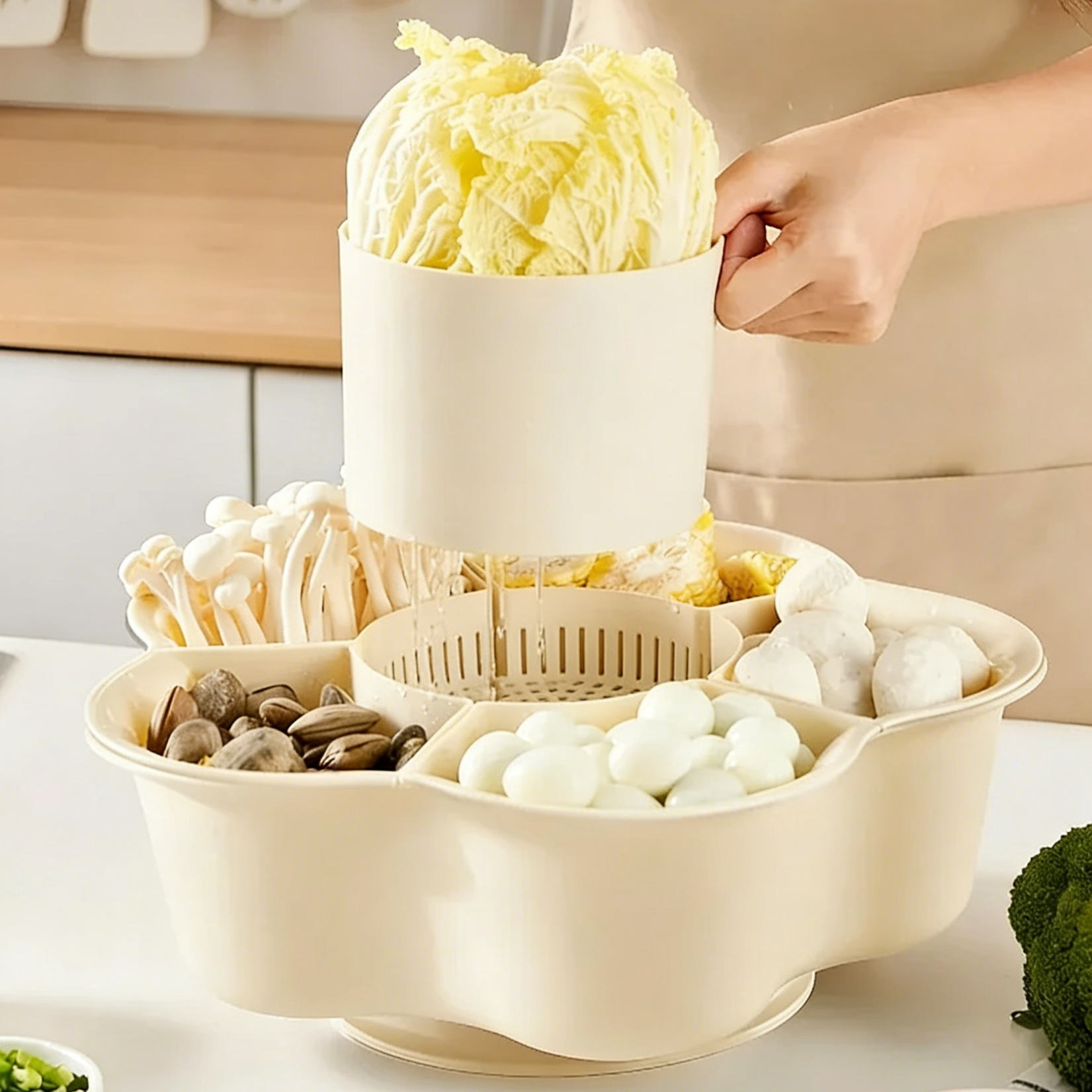 大容量可旋轉洗菜配菜拼盤瀝水籃